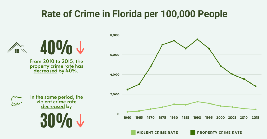Both Florida’s violent and property crime rates have declined over that period: